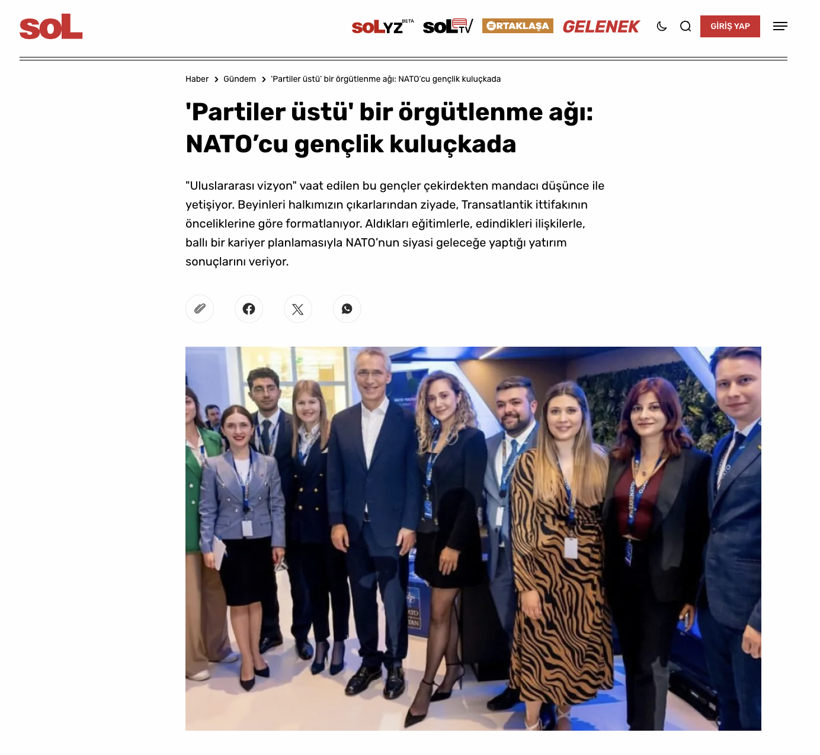 Sol Haber’de yayımlanan “NATO’cu gençlik ağı” başlıklı içerik hakkında Türk Atlantik Konseyi Genel Sekreteri ve Hariciye Dış Politikaları ve Güvenlik Araştırmaları Merkezi Direktörü Av. Emir Abbas Gürbüz bir açıklama yaptı.