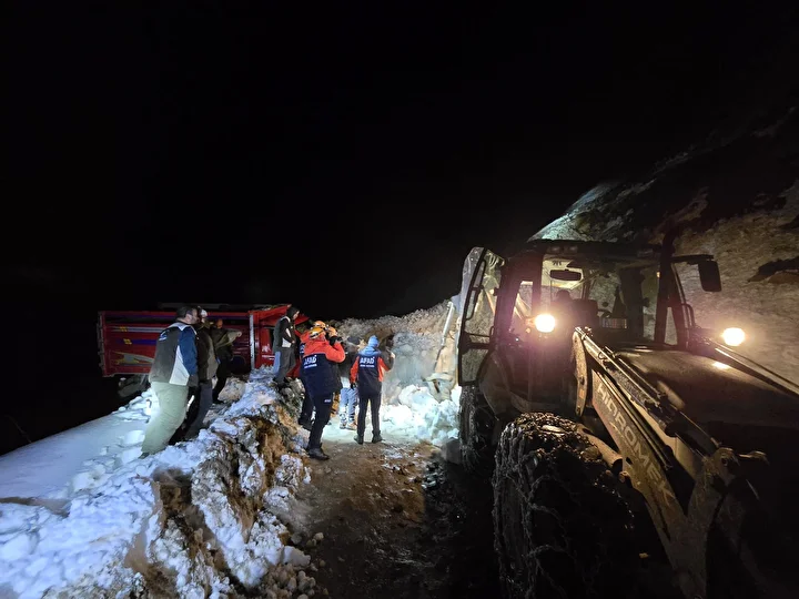 Yolda seyir halinde bulunan ve içinde hayvanların da yer aldığı bir kamyonete çığ çarpması sonucu uçurumun kıyısında askıda kaldı.